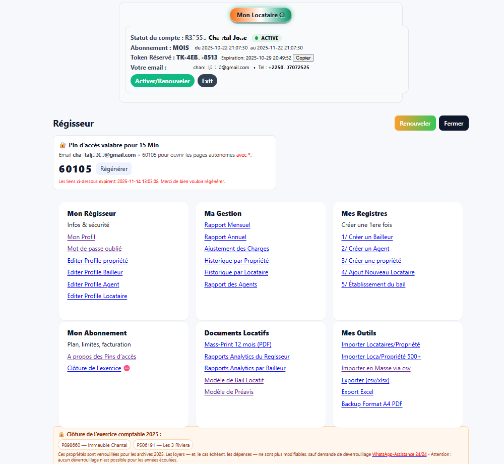 - Le Régisseur reste avant tout un superviseur et le gestionnaire de votre abonnement sur www.locataire.ci.